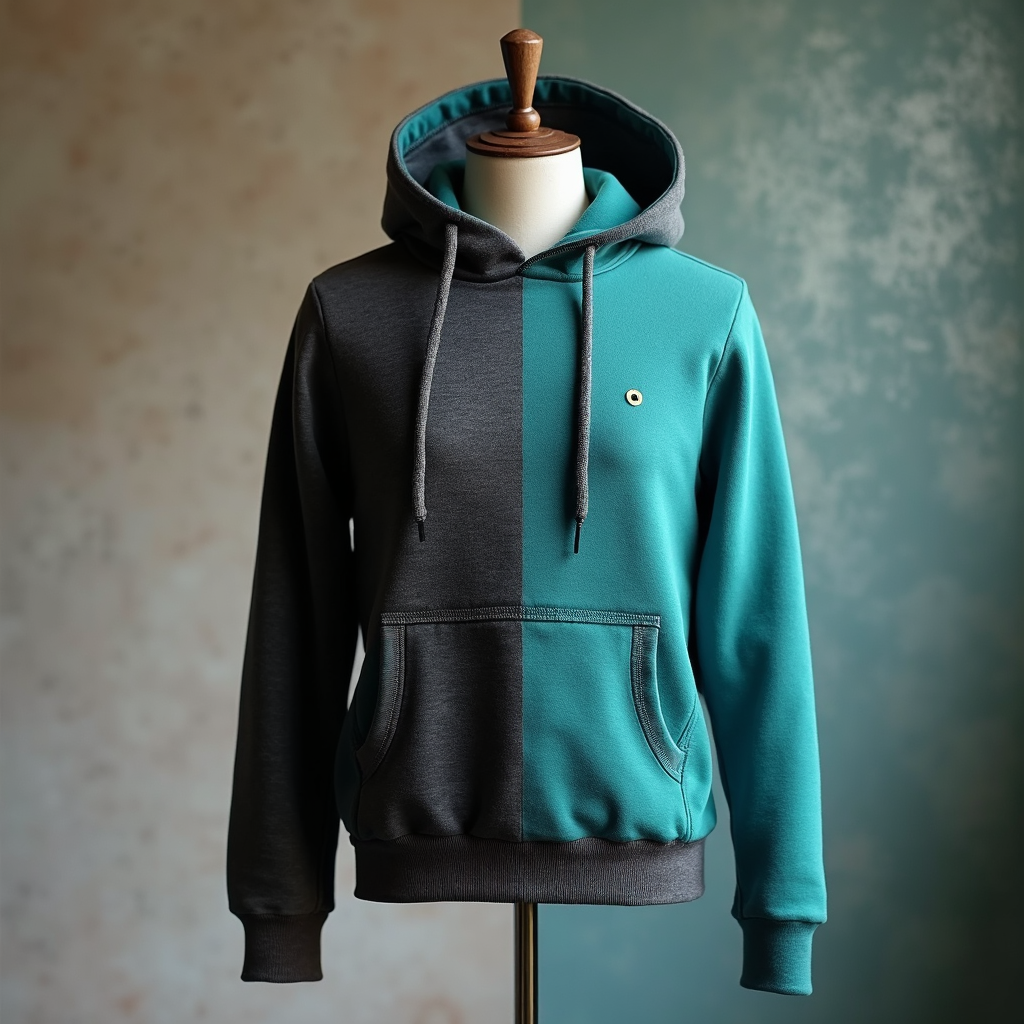 A collection featuring two-tone color-blocked hoodies for a unique style.