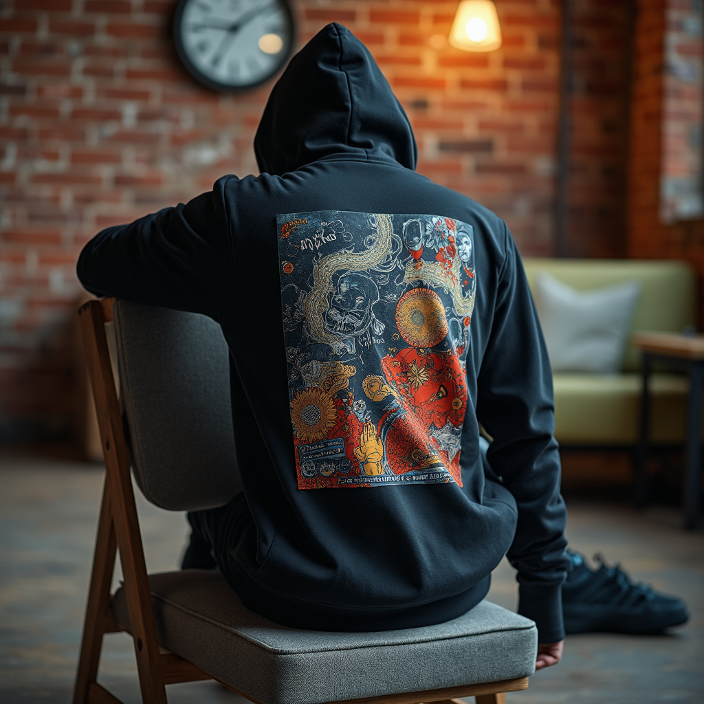 Hoodies with striking, large-scale graphic prints on the back or front.
