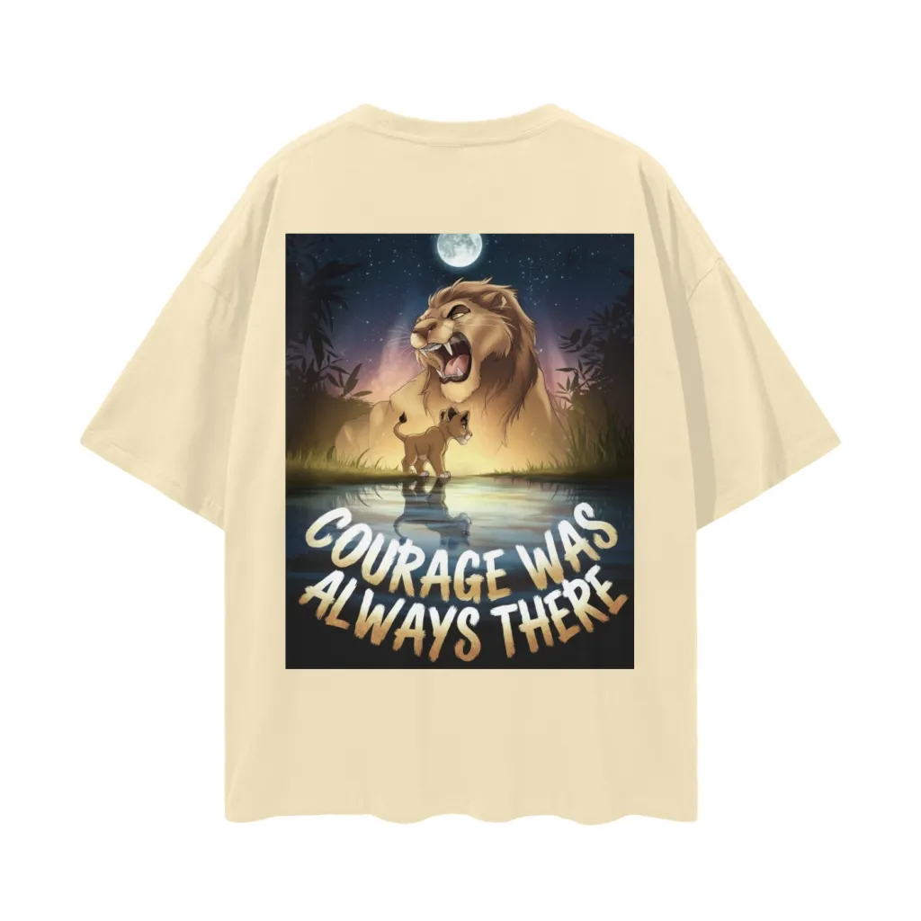 The Courage Within Lion Reflection Tee captures a pivotal moment of self-realization. Under a full moon, a young cub stands at a still pond; in the water’s reflection—and in the glowing backdrop—roars the lion it’s destined to be. The message below, “Courage Was Always There,” reminds wearers that bravery isn’t found, it’s revealed.