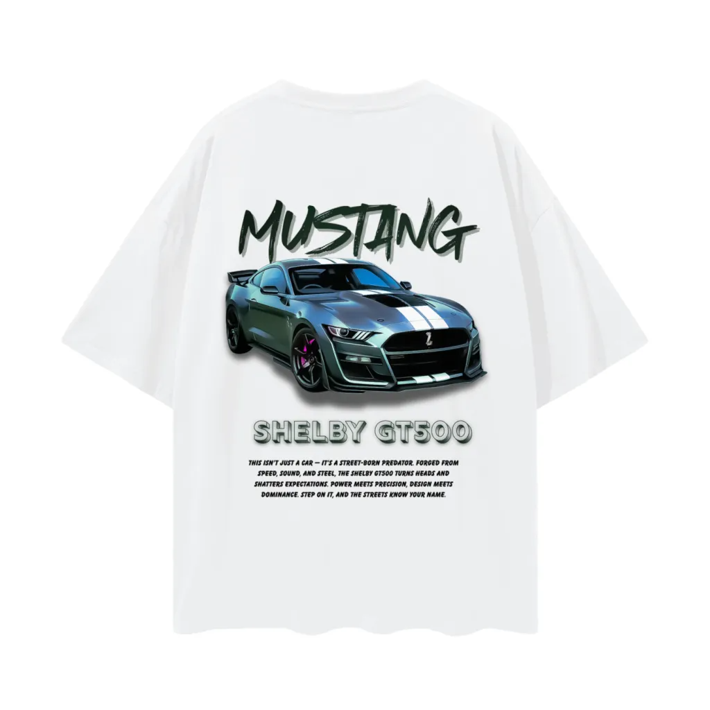 Rev up your wardrobe with the Mustang Shelby GT500 Performance Tee, designed for enthusiasts who live for horsepower and style. The front offers a clean, minimalist Yaarwear logo, while the back delivers a high-impact, full-back print of the legendary Shelby GT500. Above the photorealistic illustration, the bold “Mustang” script sets the tone—below it, “Shelby GT500” appears in metallic lettering. A rider’s creed sits beneath: